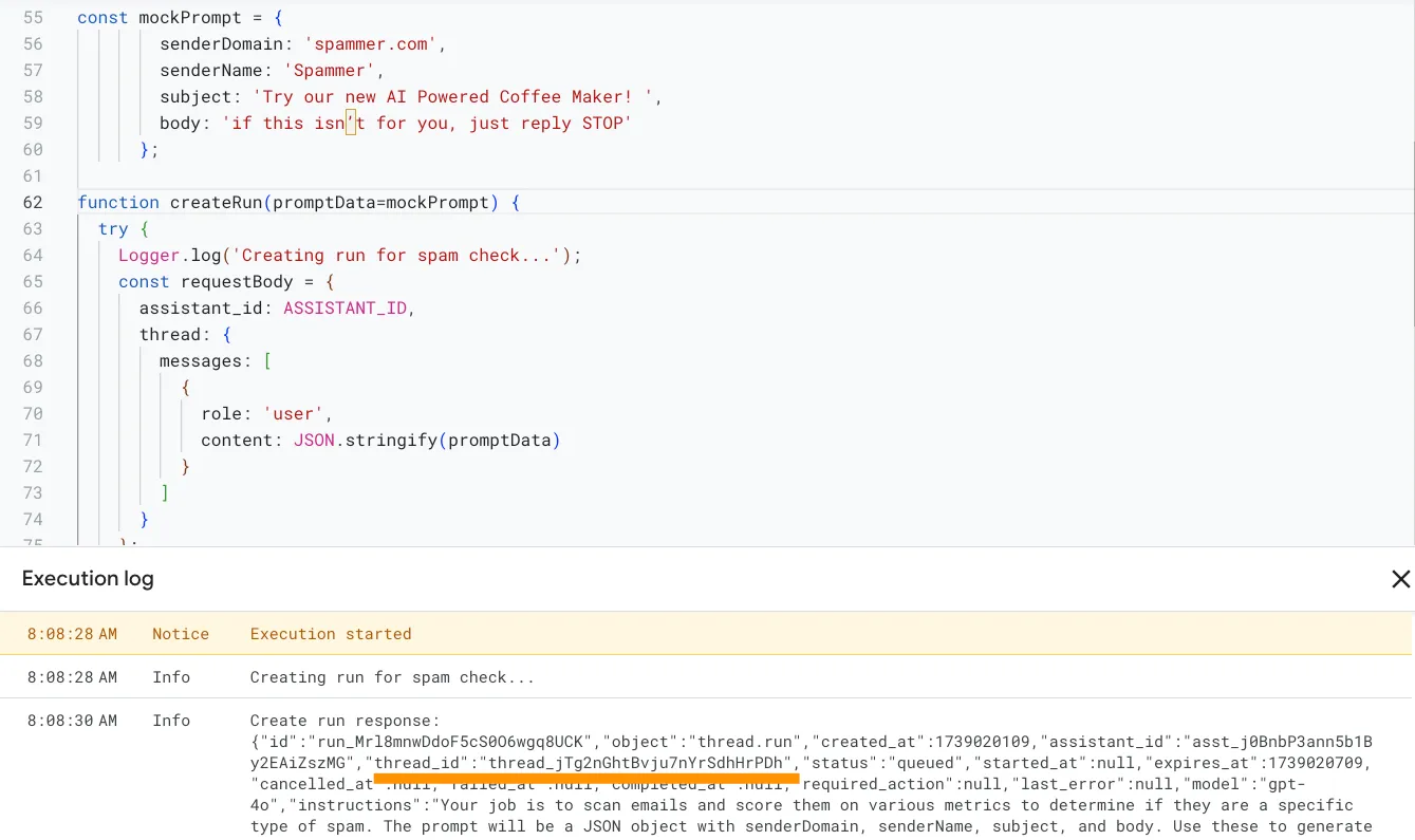 Run the script again, and hopefully you’ll see a few that get moved back to spam. If not, try adjusting the assistant’s instructions to better target the type of spam you’re receiving, and/or increase the threshold variable.
