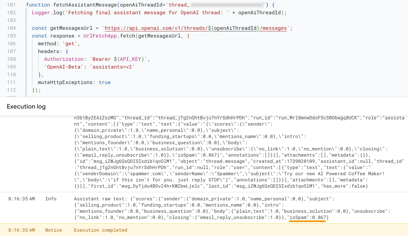 Anti-Spam Agent: OpenAI Assistant Email Filter Using Google Apps Script