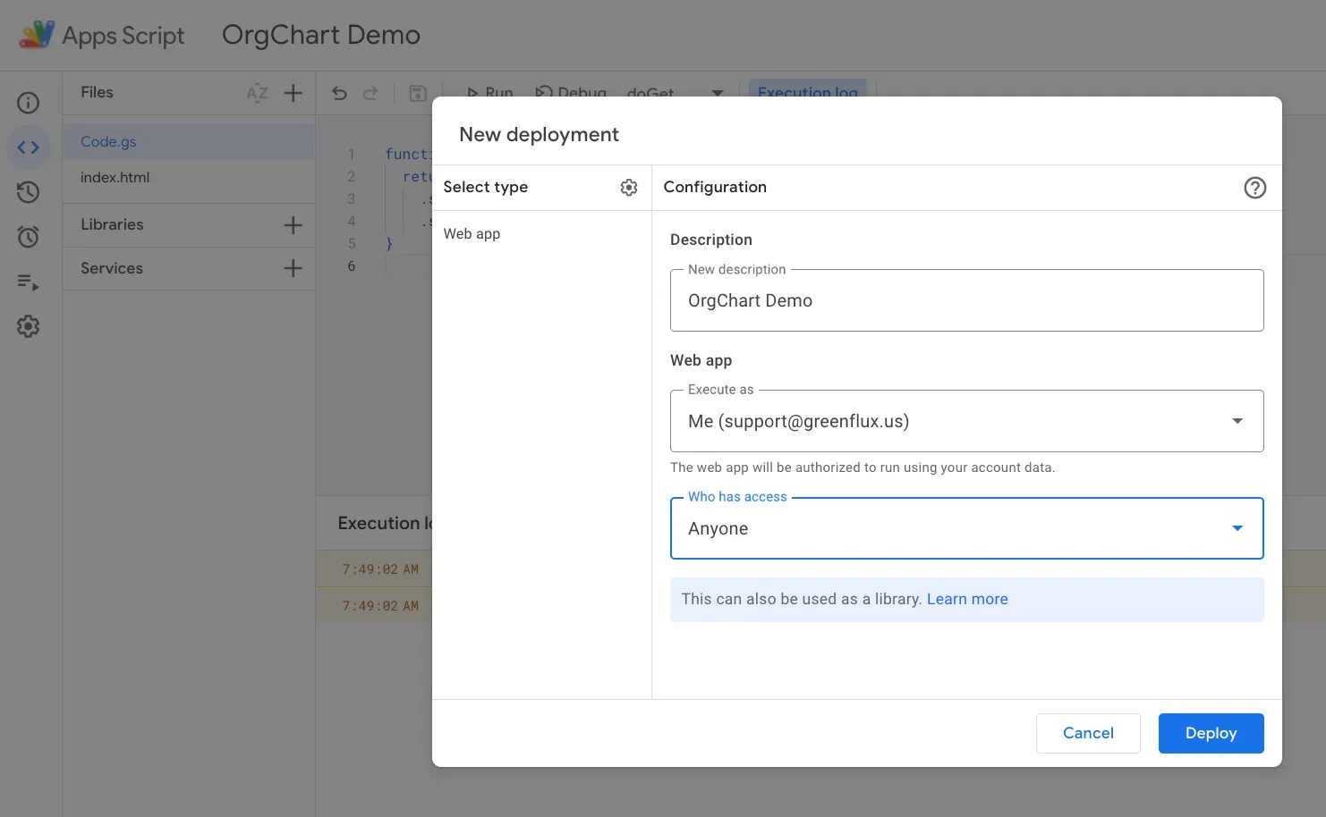 Deploying Apps Script as a Web App