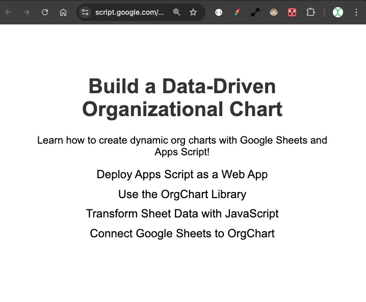 <p>Learn how to create dynamic org charts with Google Sheets and Apps Script!</p>