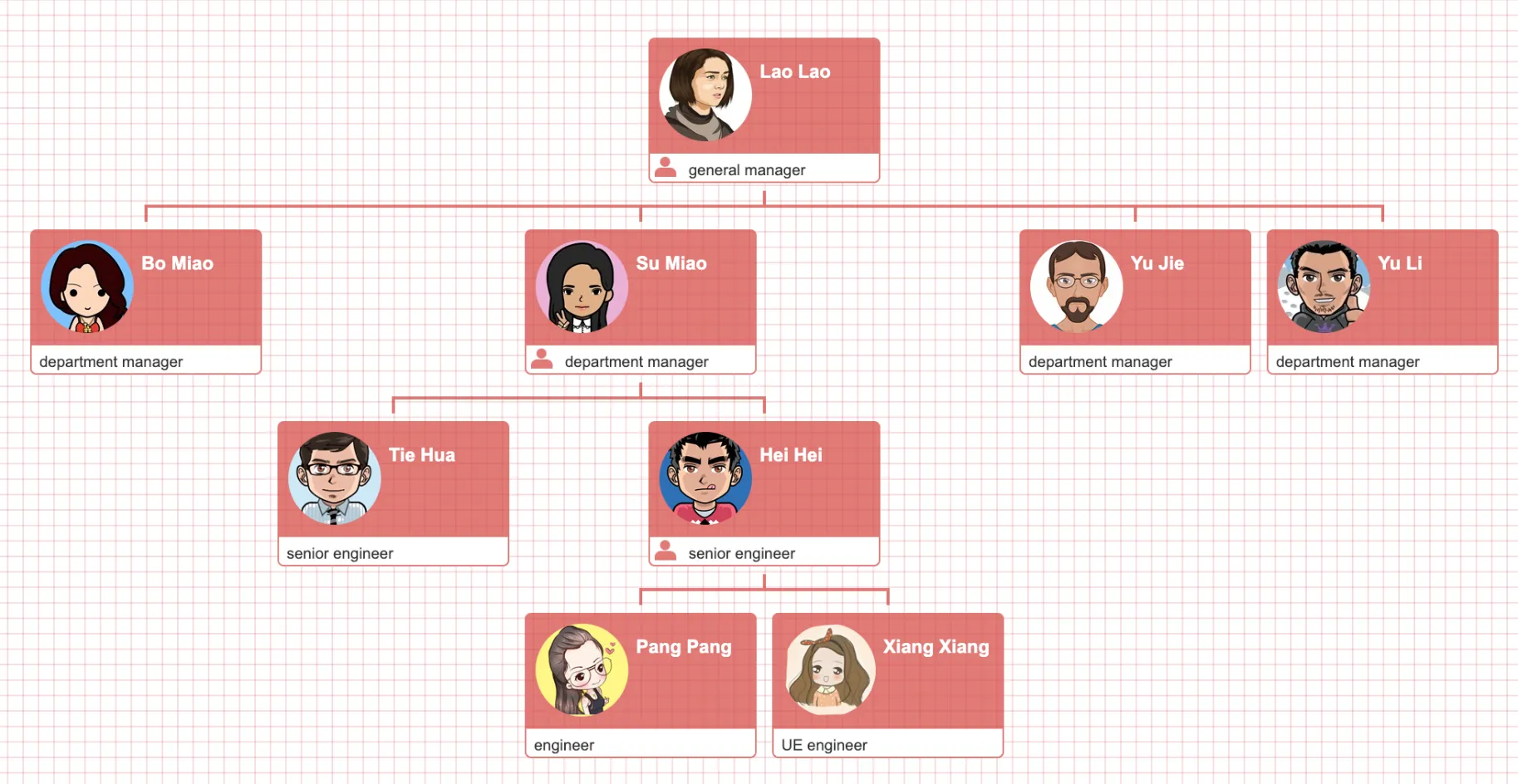 { 'name': 'Su Miao', 'title': 'department manager',