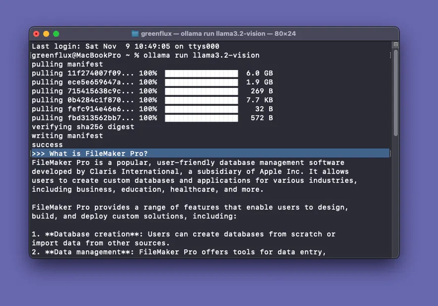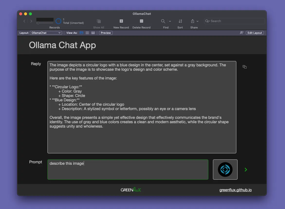 In this guide, I’ll be building on a previous post about integrating with the original text model using FileMaker Pro and Ollama. Now that the vision model is out, I wanted to update the app to send images from a container field in FileMaker and share a copy of the finished app.