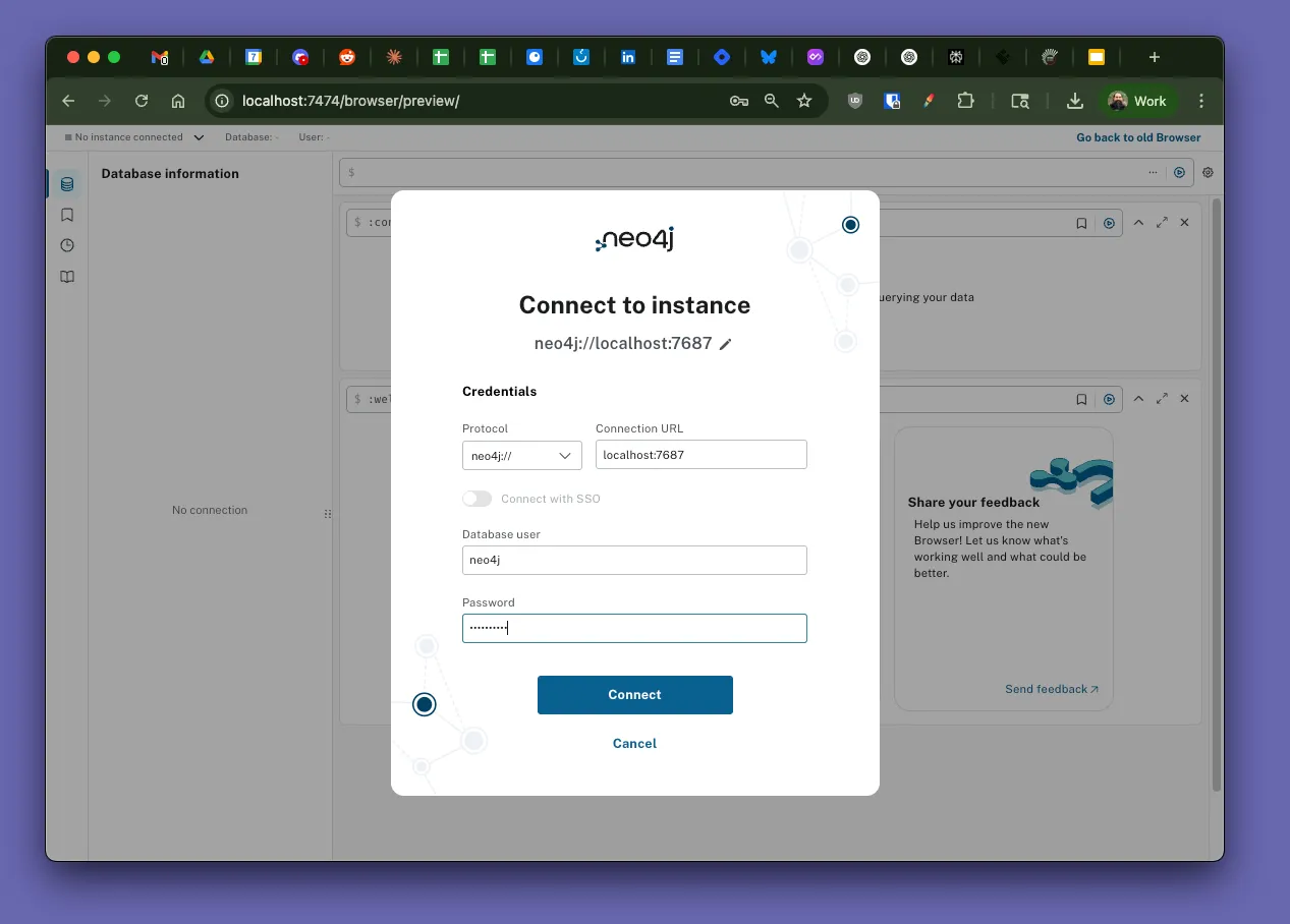Note: The web interface runs on port 7474, but it uses port 7687 to connect to the database.