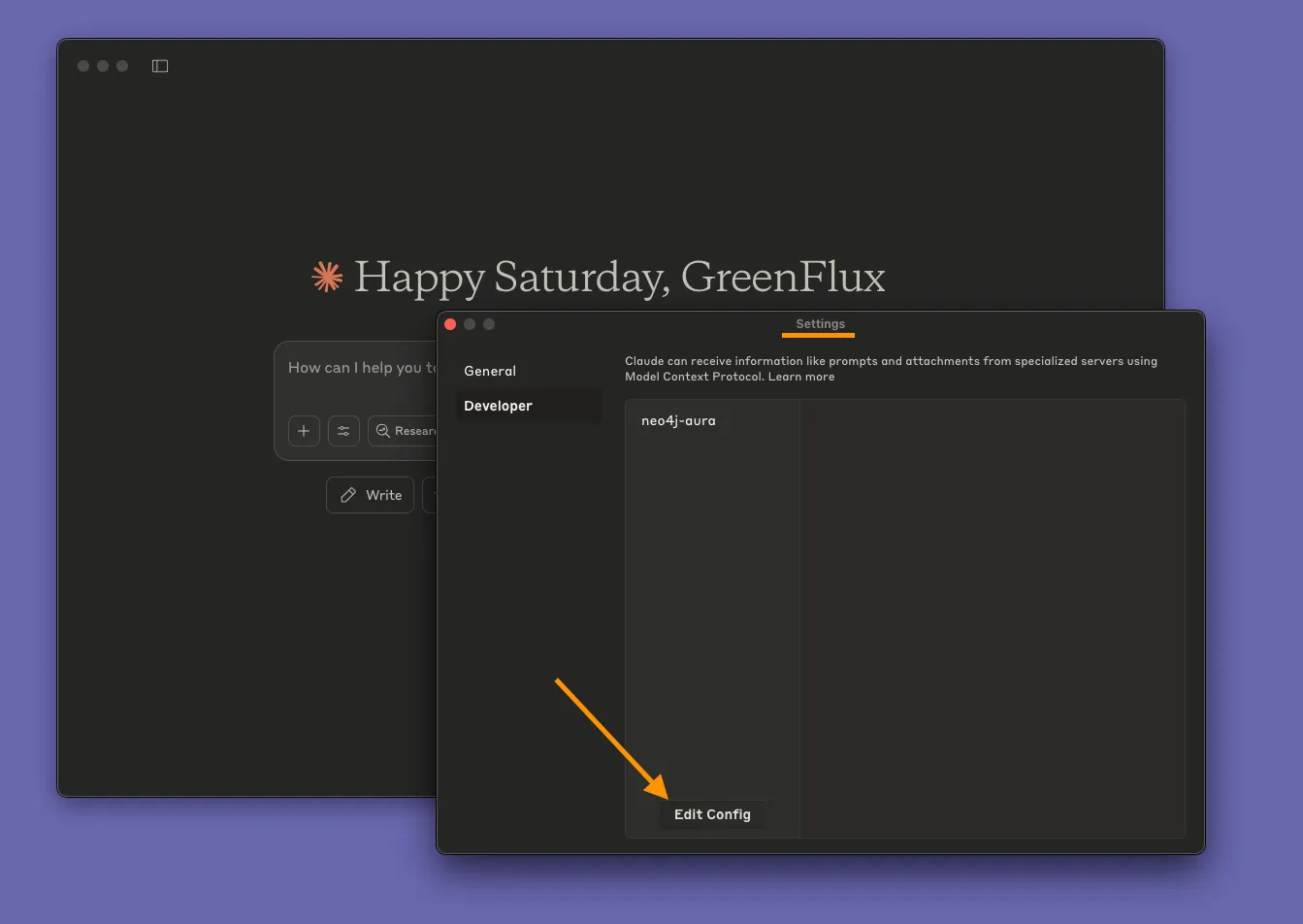 Next, install Claude Desktop, open it and go to the Settings, then Developer. Then click Edit Config.