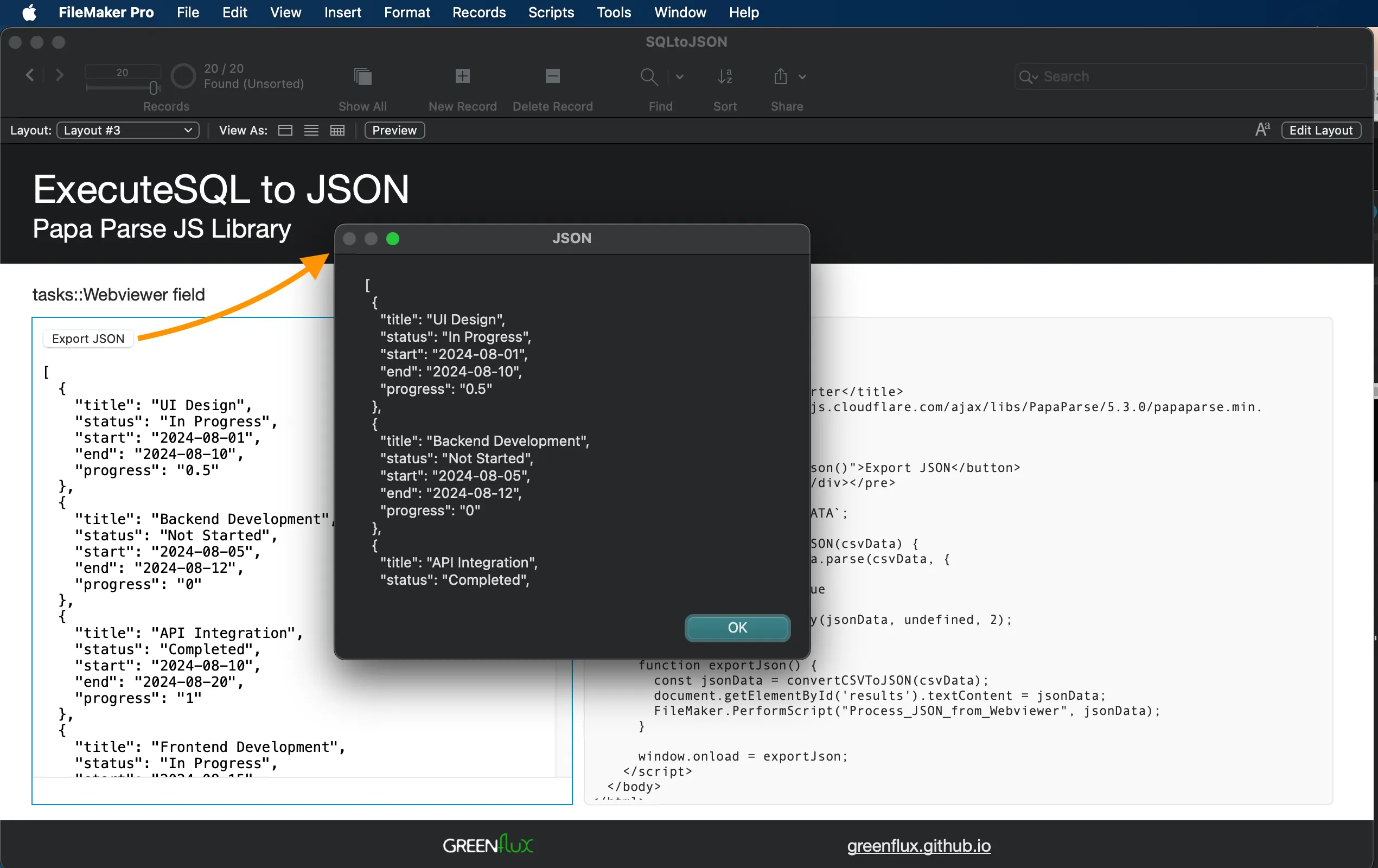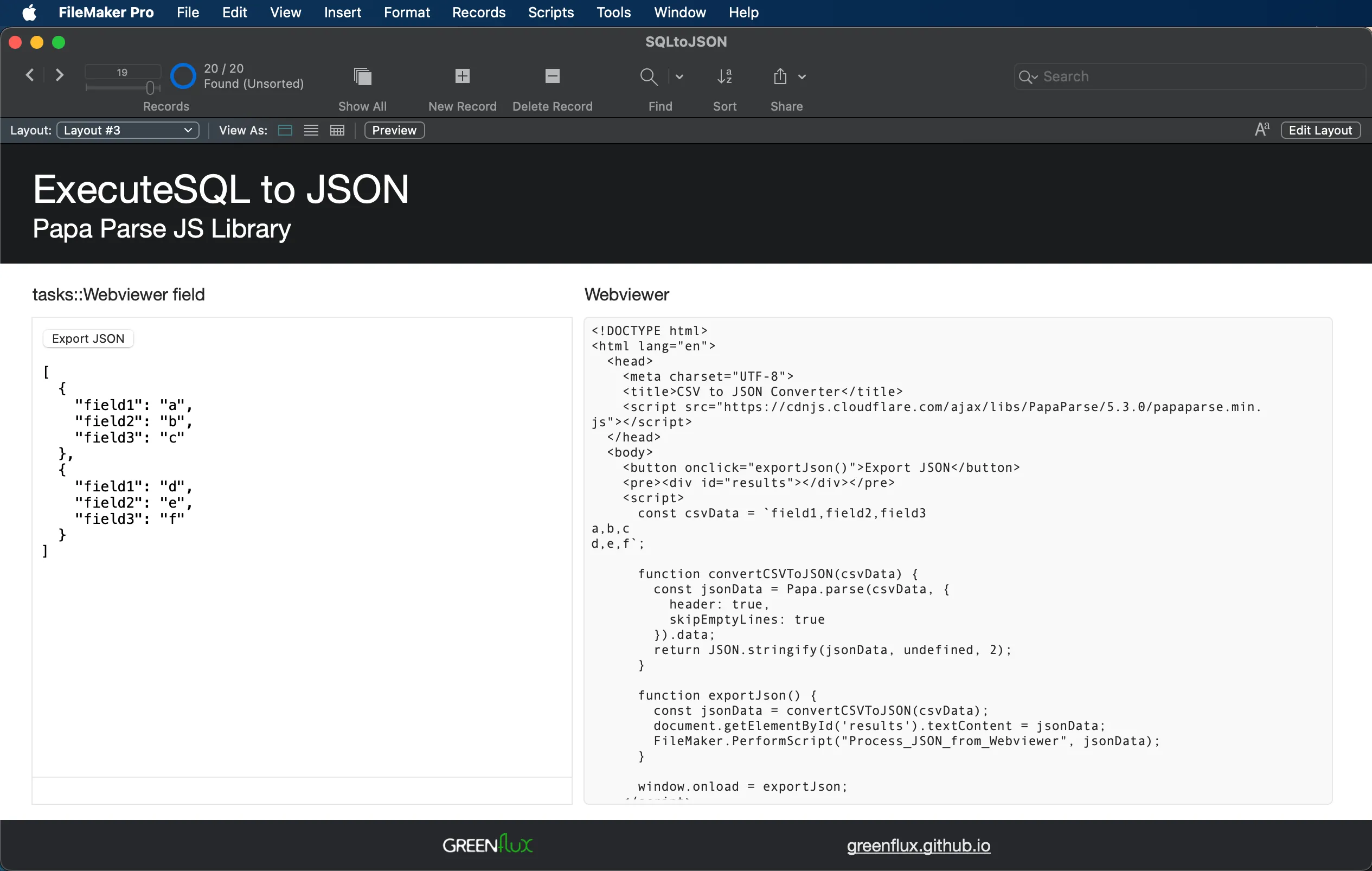 SQL to JSON in FileMaker using Papa Parse